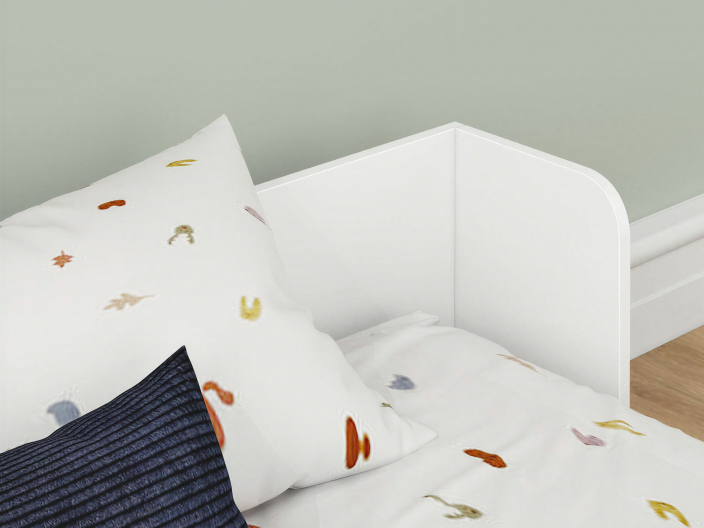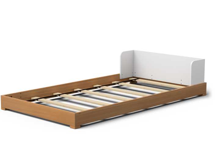 - A floor bed frame helps your little one get used to climbing in and out of an elevated bed.